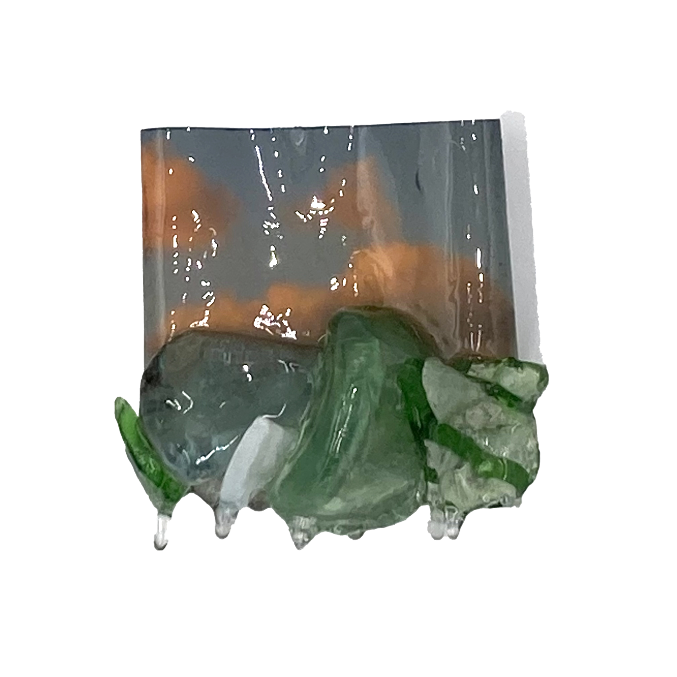This is a series of landscape conglomerates made using found materials, scientific slides, rocks, and other things one might enjoy collecting. These treasures and photo reproductions are encased in resin, forming a jewel-like specimen to remember one's place in our current geologic time.